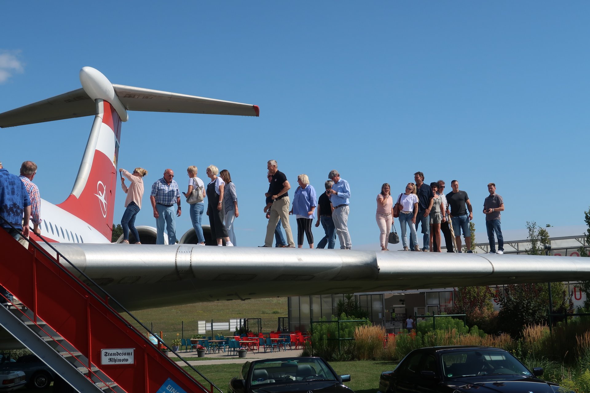 Vom 12. bis zum 14. August erkundeten wir mit 19 Autos die herrliche Landschaft Brandenburgs. Die Tour begann mit einem herzlichen Empfang bei unserem vor Ort ansässigen SB Florian und seiner Frau Andrea. Beide hatten für uns und viele Freunde ein tolles zweitägiges Programm mit vielen Überraschungen ausgearbeitet. Als Ausgangspunkt für unsere Tour hatten sie das Landgut Stober ausgewählt - eine perfekte Umgebung für jeden Oldtimer-Liebhaber. Am ersten Tag ging es zuerst nach Brandenburg und in das dortige Industriemuseum. Der Abstecher dorthin war und ist absolut lohnenswert. Bei Sonnenschein und blauem Himmel wurden wir dann über herrliche Traumstraßen nach Stölln geleitet. Zu unserem großen Erstaunen standen wir nach einer Rechtskurve auf einmal vor einer waschechten IL 62, die dort im Jahr 1989 auf einem Acker gelandet war. Aber damit nicht genug … Als nächstes Highlight durften wir die Maschine besichtigen und anschließend über den Notausgang verlassen. D.h. wir standen plötzlich auf dem Tragflügel – ein wirklich einmaliges Erlebnis. Der zweite Tag verlief ebenso interessant. Nach einem ausgiebigen Frühstück ging es erst einmal ein Stück Richtung Hamburg. Aber schon bald kam die nächste Überraschung. Diesmal besuchten wir die Gruft eines zu Lebzeiten wohl sehr verwegenen Ritters. Sein Körper ist auch nach Hunderten von Jahren unerklärlicherweise noch vollständig erhalten. Selbst berühmte Ärzte wie Virchow oder Sauerbruch konnten sich den guten Erhaltungszustand des Leichnams nicht erklären. Vielen Dank an unsere beiden Brandenburger für die perfekte Organisation!! Es war eine Freude, bei Euch zu sein.