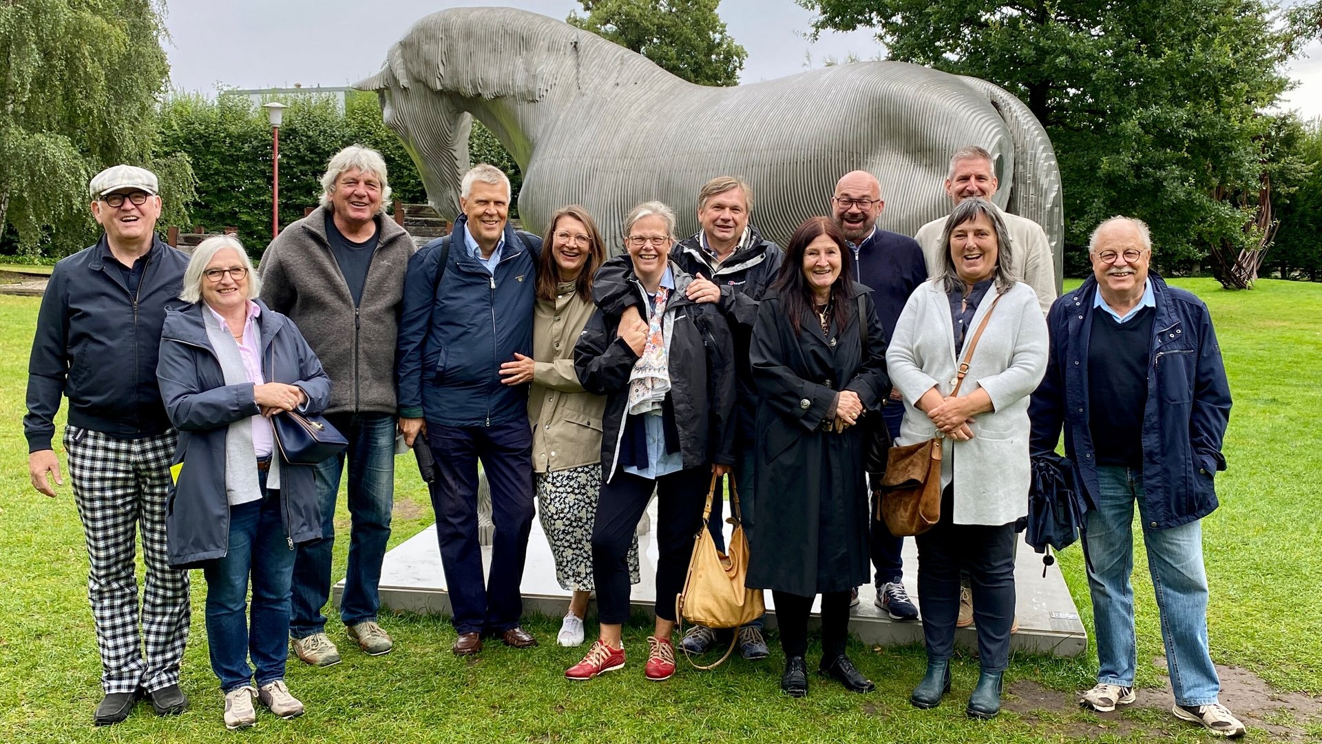 Am 22.8.2021 hatten sich einige Mitglieder der Landesgruppe 3 zur Ausfahrt in Richtung Rendsburg verabredet, um die NordArt im Kunstwerk Carlshütte zu besuchen, eine bemerkenswerte Ausstellung moderner Kunst, die seit 1999 jährlich stattfindet. Wir waren 12 Teilnehmer*innen und beeindruckt von der Qualität der Exponate, aber auch von der Größe der Ausstellung auf 22 ha und in den alten Produktionshallen der Carlshütte à Kunstwerk Carlshütte, Vorwerksallee, 24782 Büdelsdorf. Hanna Kremp führte uns durch die Ausstellung und machte auf Details aufmerksam, die großes Interesse fanden. Ein Supertag, den wir dann in der besten Eisbar am Nordostseekanal ausklingen ließen mit Eisbechern im Vorkriegsformat – passend zum Baujahr des ASC à www.eisstuebchen-rendsburg.de Text und Foto Reinhard S / ASC Hansestädte & Schleswig-Holstein
