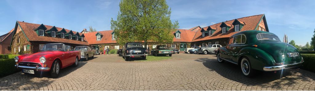 Frühjahrsausfahrt LG Hansestädte& Schleswig-Holstein am 22. April 2017 April, April, der weiß nicht, was er will… Unter diesem Wetter-Motto hätte sie auch stehen können, unsere Frühjahrsausfahrt. 36 Fahrzeuge gingen an den Start, mit dabei waren auch zwei Gäste aus anderen Landesgruppen, namentlich Dietmar M. aus der LG Rhein-Ruhr und Georg S. von der LG Hessen. Gut gestärkt verließen wir das Alte Stahlwerk in Neumünster, eine wirklich sehr interessante Lokation, die zum erneuten Besuch einlädt. Und da kam er auch schon, der erste zarte Regen, aber auch nur, um nach den ersten Metern wieder der Sonne zu weichen. Nach einer Fahrt durch unser schönes Schleswig-Holstein war das erste Ziel das Glacehaus in Bad Oldesloe. In diesem lichtdurchfluteten Restaurant im Gewächshaus gab es Kaffee und Kuchen satt zur erneuten Stärkung. Pünktlich zum Re-Start kam auch der Regen zurück, nur länger und auch heftiger als zuvor. Weiter ging es für die Teilnehmer durch unsere wunderschöne Heimat zu unserem Ziel Gut Pronstorf. Dies war eine sehr gelungene Fotokulisse für unsere Schnauferl. Im Kreis angeordnet auf dem kräftig begrünten Gutshofgelände ließ es sich selbst die Gutsherrin nicht nehmen, mit dem Fotoapparat bewaffnet Ihre Runden zu drehen. Mittlerweile war auch die Sonne wieder zugegen und verabschiedete den Tag gebührlich. Wir wurden mit einem Gruß aus der Küche und einem anschließenden 3-Gänge-Menü verwöhnt. Für Aufregung sorgte ein Schwelbrand auf der Herrentoilette, eine Kerze war hier in den Mülleimer der Papierhandtücher gefallen und hatte diese entzündet. Als Gewinner der Ausfahrt wurde ein Gast gekürt. Er hatte so manchen „alten Hasen“ in den Disziplinen Quiz, Sport (Bogen-Schießen) und auch fahrerischem Können alt aussehen lassen. Die Organisation der Frühjahrsausfahrt 2018 geht an den Gewinner des 13. Platzes, dieses wurde vorher gemeinsam von den Teilnehmern festgelegt. Diesen Platz und auch damit diese Ehre dürfen sich gleich zwei SB teilen: Manuel C. und Peter H.. Und da sagt man doch immer, 13 ist eine Unglückszahl. Last but not least bleibt nur noch den Ausrichtern dieser tollen Ausfahrt, SB Joachim J., seiner Frau Andrea und deren Tochter Anna-Lena ein dickes Dankeschön auszusprechen. Ihr habt uns wirklich einen sehr schönen und unvergesslichen Tag beschert.