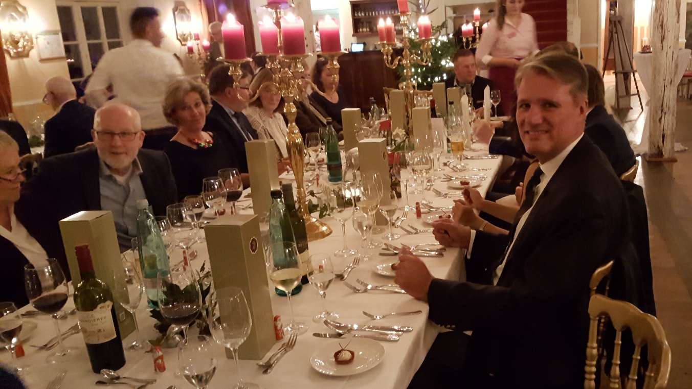 "EINMAL IM JAHR IST ALLES WIE FRÜHER" Die ASC-Weihnachtsfeier 2017 auf Gut Pronstorf. Einmal im Jahr ist alles wie früher - dieses Motto paßt zu einem hochherrschaftlichen Gut genauso wie zum ASC. Die Tradition erleben und mit Leben füllen! In 2017 hat unsere Landesgruppe ihr traditionelles vorweihnachtliches Essen mit Damen auf Gut Prondorf veranstaltet. Nachdem wir schon bei der Frühjahrsausfahrt 2017 vom Ambiente und dem Rahmen des gepflegten holsteinischen Landgutes begeistert waren, lag dieser Ort für die Weihnachtsfeier nah, zumal der Graf und die Gräfin höchstpersönlich bereits seit über 25 Jahren die "Pronstorfer Weihnacht" auf Gut Pronstorf ausrichten. Alles erstrahlt in weihnachtlichem Glanz. Alle ehemaligen Wirtschaftsgebäude wie das in 2010 zum Hotel umgebaute Torhaus, die alte Haferscheune, der Kuhstall und der Kutschstall prägen die Pronstorfer Weihnacht. Das Kernstück des Gutes ist das 1728 erbaute barocke Herrenhaus. Die darauf zuführende Lindenallee wird in der Dämmerung gesäumt von flackernden Feuerkörben. Am Nachmittag wird es durch diese Beleuchtung besonders gemütlich. Im Kutschstall hat man für uns eine festliche Tafel am prasselnden Kamin hergerichtet. Es wurde ein excellentes 4-Gänge-Menu gereicht. Hierzu wurden auch zahlreiche frische Produkte aus eigener Gutsproduktion verarbeitet. Die Stimmung war sehr entspannt. Im Torhaus wurde dann bis spät in die Nacht weitergefeiert. Manche Schnauferlbrüder genossen mit ihren Familien den exklusiven Weihnachtsmarkt im gutsherrlichen Ambiente am Nachmittag vor der Feier, andere am nächsten Tag. Alle waren begeistert. In den liebevoll restaurierten Gebäuden und im winterlichen Gutspark gab es für Groß und Klein, für Jung und Alt überall Überraschendes zu entdecken. Meisterhafte Kunsthandwerker und ideenreiche Künstler ließen sich beim Entstehen ihrer Objekte aus Glas, Ton, Holz, Karton, Metall, Porzellan, Stoffen, Leder und Gold über die Schulter gucken. Um die 100 Stände sind eine vielfältige Fundgrube für wunderbare Geschenke, von der einmaligen Antiquität, dem künstlerischen Unikat bis zur exquisiten Rarität. Stände mit Naturprodukten wie Öle, Honig, Käse, Floristik, Pronstorfer Wildprodukte aus hiesiger Forst, frisch geräucherter Fisch, Pestos, Gebäck, frisch gebackenes Brot, Marmeladen etc. erfreuen sich besonderer Beliebtheit.